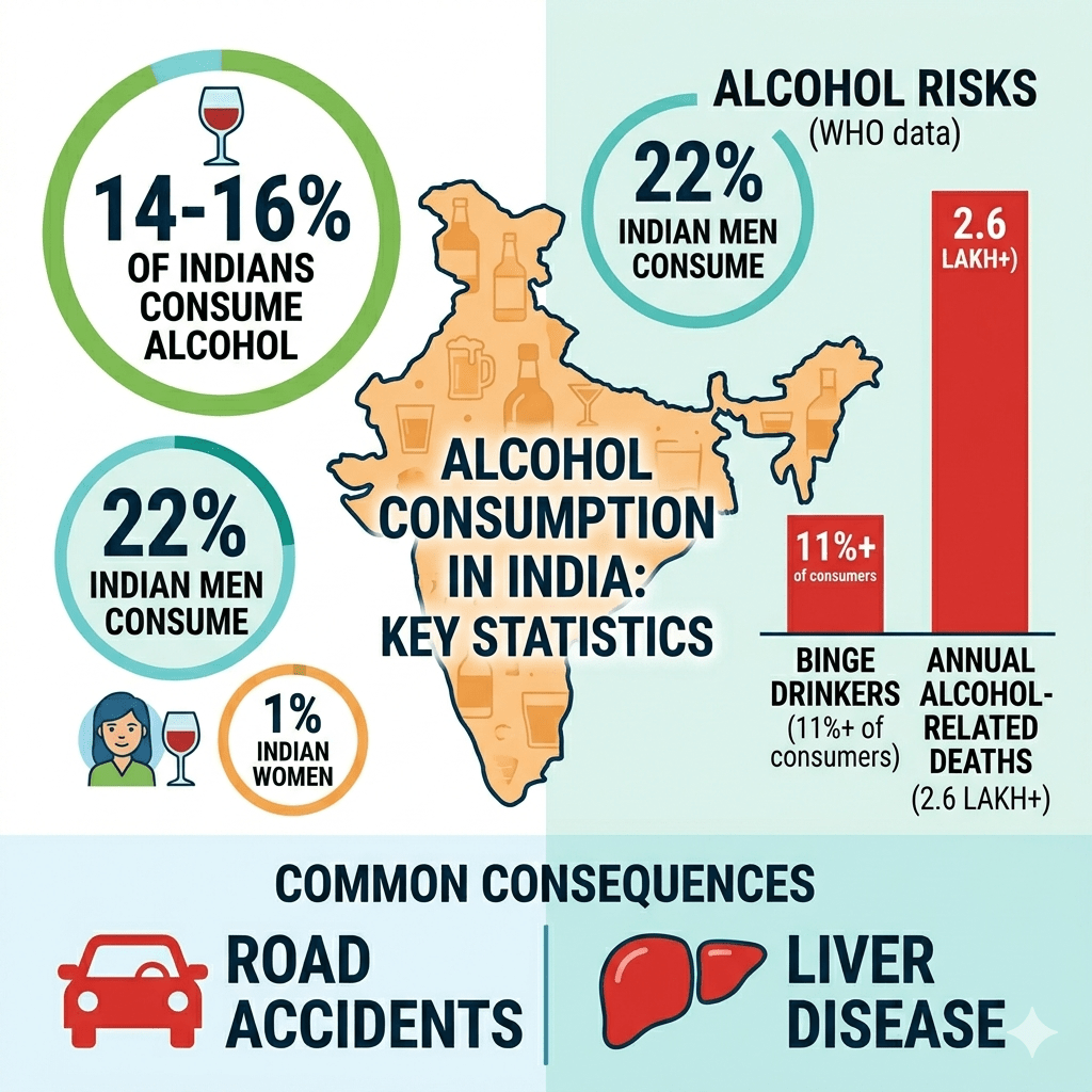 In India, alcohol consumption is responsible for over 2.6 lakh deaths. It is also responsible for road accidents and liver disease. Therefore, binge drinking is a critical health issue.