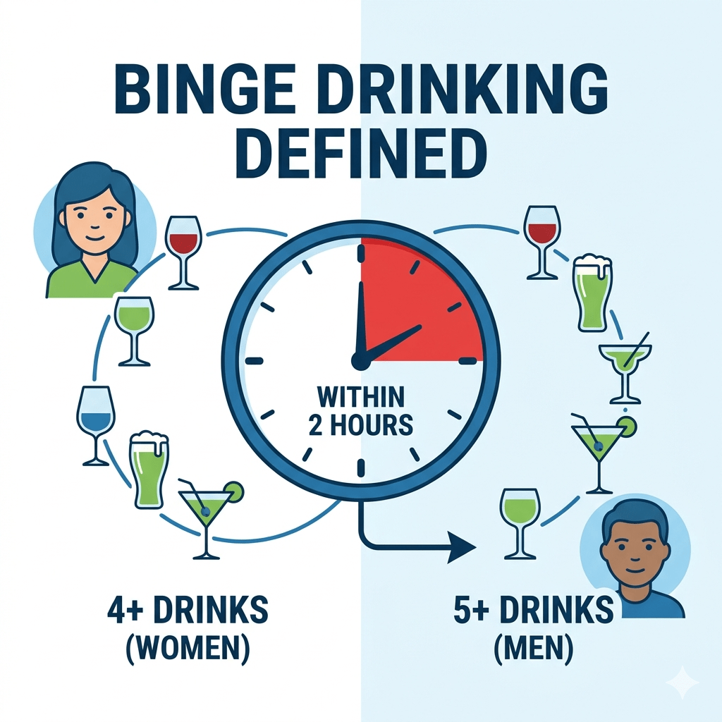 Consuming 4–5 drinks within two hours is considered binge drinking.